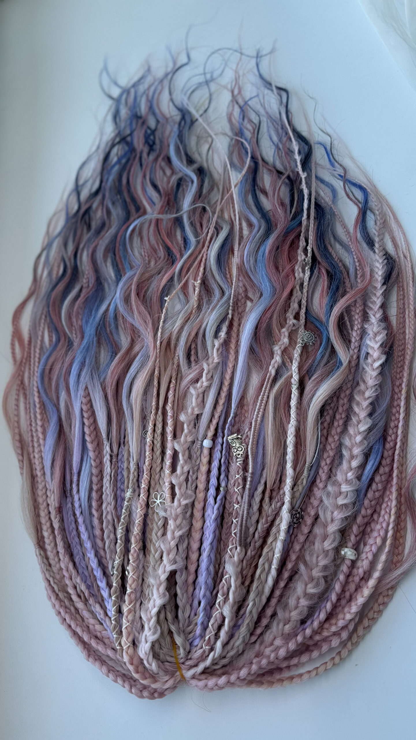 Kolor: delikatny, pastelowy mix – odcienie pudrowego różu, lawendy oraz subtelnych błękitnych pasm. Efekt miękkiego przejścia kolorów (ombre).
